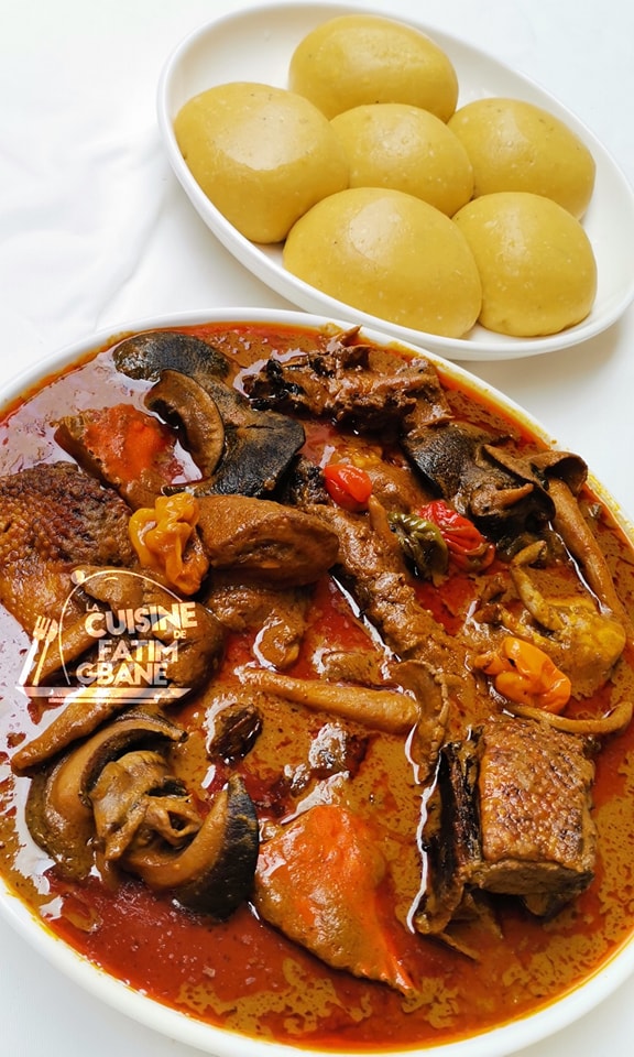 couscous de manioc accompagné de poisson grillé, oignons, tomates.